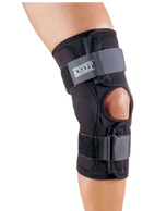 Great for an unstable knee, the KNAPP Hinged Knee brace is multi-functional, perforated neoprene. The bilateral heavy polycentric hinges are fully covered, but easy to access. Back closure for custom fit that allows the brace to be applied with shoes on. 16" length can be used for patella fractures and ACL sprains and strains. Latex free.